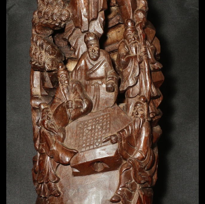 清代 竹根雕 商山四皓図 置物|囲碁人物群像